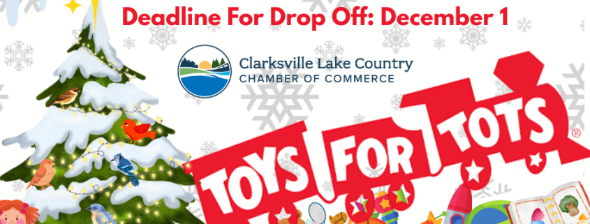 Events, NewsThe Clarksville Lake Country Chamber of Commerce is proud to be a drop-off location for the annual Toys for Tots again this year. Please drop off unwrapped toys or gift cards to our offices Monday – Friday between 9am and 5pm. We’re located at 105 2nd Street in downtown Clarksville.